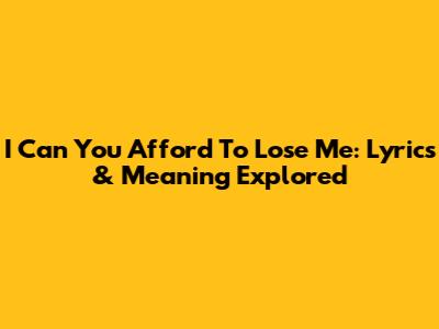 I Can You Afford To Lose Me: Lyrics & Meaning Explored