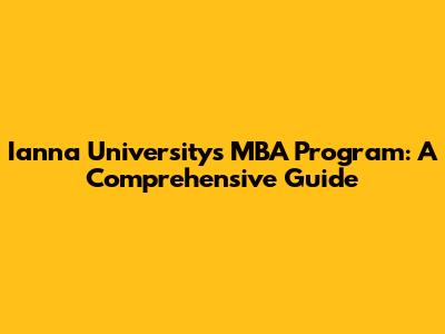 Ianna University's MBA: Your Guide To Courses And Admission