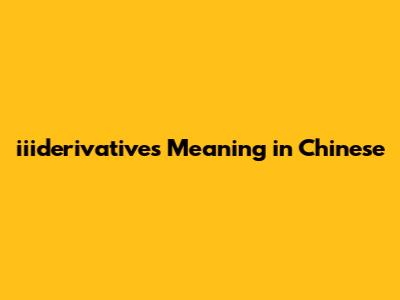 Iiiderivatives: Understanding The Chinese Meaning