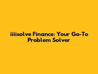 Iiiisolve Finance: Your Go-To Problem Solver