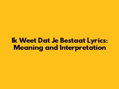 Ik Weet Dat Je Bestaat Lyrics: Meaning And Interpretation