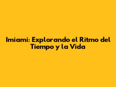 Imiami: Tiempo, Vida Y Experiencias Inolvidables