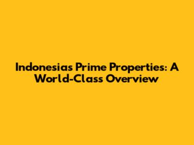 Indonesia's Prime Properties: A World-Class Overview