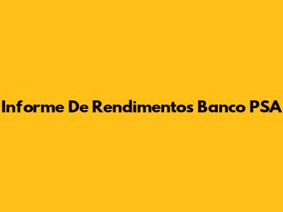 O Que Contém o Seu Informe de Rendimentos Banco PSA?