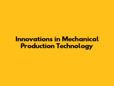 Innovations In Mechanical Production Technology