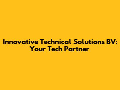 Hey guys! Ever heard of Innovative Technical Solutions BV? If you're in the market for some seriously cutting-edge tech solutions, you've come to the right place. In this article, we will dive deep into what makes them stand out, what services they offer, and why they might just be the perfect partner for your next big project.