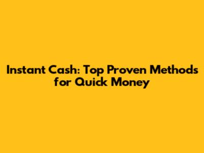 Instant Cash: Top Proven Methods For Quick Money