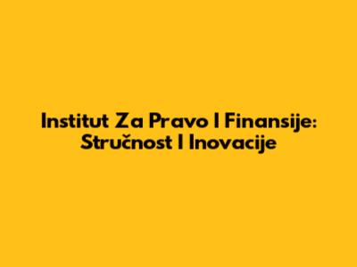 Institut Za Pravo I Finansije: Stručnost I Inovacije