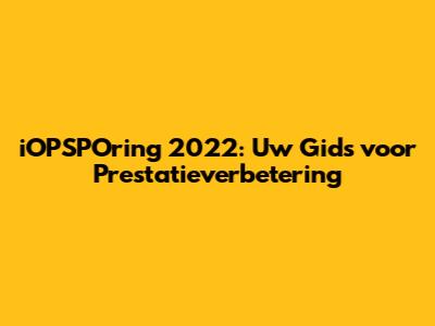 IOPSPOring 2022: Uw Gids Voor Prestatieverbetering