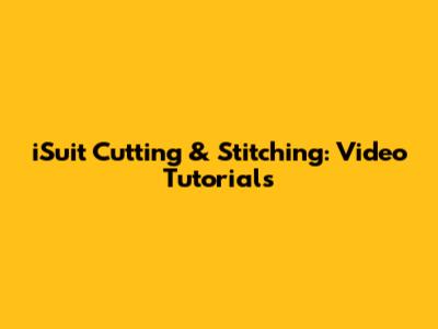 ISuit Cutting & Stitching: Video Tutorials