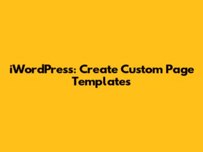 IWordPress: Create Custom Page Templates