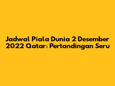 Guys, pada tanggal 2 Desember 2022, Piala Dunia 2022 di Qatar menyajikan pertandingan-pertandingan yang sangat dinantikan. Para penggemar sepak bola di seluruh dunia menahan napas saat tim-tim favorit mereka bertanding demi memperebutkan tiket ke babak selanjutnya. Tanggal ini menjadi sangat krusial karena merupakan hari penutup fase grup untuk beberapa kelompok, yang berarti setiap gol, setiap penyelamatan, dan setiap keputusan wasit bisa menjadi penentu nasib sebuah tim. Bayangkan saja, tensi pertandingan akan sangat tinggi, karena tim yang kalah berisiko besar untuk pulang lebih awal, sementara yang menang akan melanjutkan mimpi mereka di turnamen akbar ini. Jadwal Piala Dunia 2 Desember 2022 Qatar ini tidak hanya tentang hasil akhir, tetapi juga tentang drama, emosi, dan momen-momen tak terlupakan yang akan terukir dalam sejarah sepak bola. Kita akan melihat bagaimana para bintang lapangan hijau menunjukkan kehebatannya, bagaimana strategi pelatih diuji, dan bagaimana semangat juang para pemain menjadi sorotan utama. Siapkan diri kalian untuk menyaksikan aksi-aksi menegangkan yang akan membuat kalian terpaku di layar kaca. Ini bukan sekadar pertandingan, ini adalah perayaan sepak bola global yang diselenggarakan di jantung Timur Tengah, Qatar, yang semakin memeriahkan antusiasme para pecinta bola di seluruh dunia.