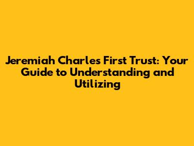 Jeremiah Charles First Trust: A Comprehensive Guide