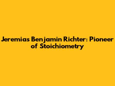 Jeremias Benjamin Richter: Pioneer Of Stoichiometry