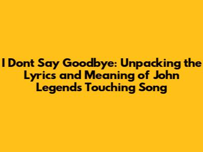 John Legend - I Don't Say Goodbye: Lyrics And Meaning