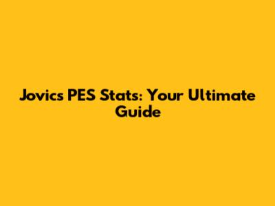 Jovic's PES Stats: Your Ultimate Guide