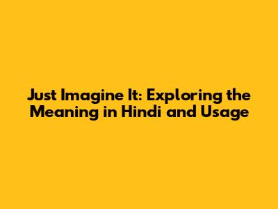 Hey guys! Ever wondered about the phrase "just imagine it" and how it translates to Hindi? Well, you're in the right place! We're going to dive deep into what it means, the nuances of its Hindi equivalents, and how you can use it in everyday conversation. Get ready to flex those language muscles and expand your Hindi vocabulary! So, buckle up, and let's unravel the mysteries of "just imagine it" in Hindi together. It's a pretty cool phrase, and knowing how to use it can seriously level up your communication skills, whether you're chatting with friends, watching Bollywood movies, or just trying to navigate the beautiful chaos of the Hindi language. We'll cover everything from the most common translations to more subtle variations, ensuring you're well-equipped to use this versatile phrase like a pro. Think of it as your ultimate guide to mastering "just imagine it" in Hindi. Let's get started!