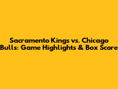 Kings Vs. Bulls: Game Highlights & Box Score