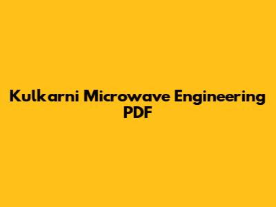 Whether you're a student just starting to learn about microwave engineering or a seasoned engineer looking for a reference guide, Kulkarni's book offers valuable insights and knowledge.