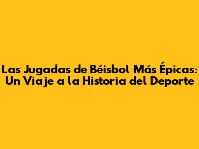 Las Jugadas De Béisbol Más Épicas: Un Viaje A La Historia Del Deporte
