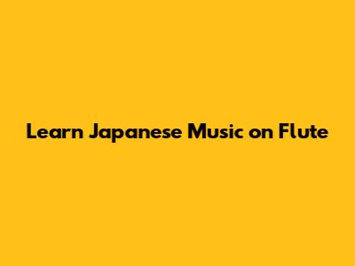 Learn Japanese Music On Flute