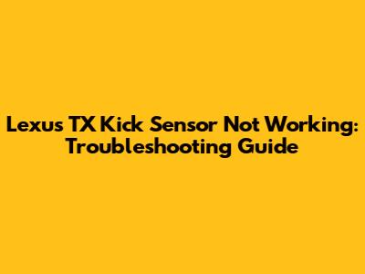 Lexus TX: Troubleshooting Kick Sensor Issues