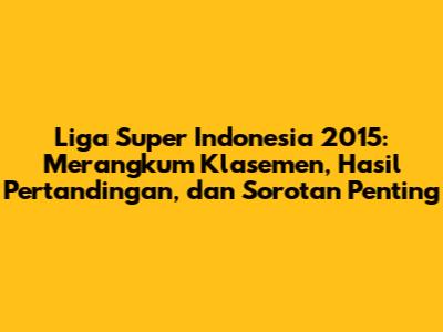 Liga Super Indonesia 2015: Klasemen, Hasil, Dan Sorotan Utama