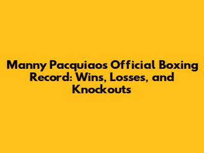 Manny Pacquiao's Official Boxing Record: Wins, Losses, And Knockouts
