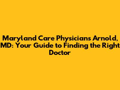 Finding the right healthcare provider is a crucial decision for you and your family. When you're looking for Maryland Care Physicians in Arnold, MD, you want to ensure that you find experienced, compassionate professionals who can meet your unique healthcare needs. This comprehensive guide will walk you through the process of identifying top physicians in the Arnold area, understanding the services they offer, and ultimately choosing the best fit for your health and well-being.