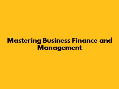 Mastering Business Finance And Management
