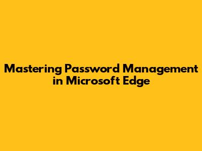 Mastering Password Management In Microsoft Edge