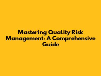 Mastering Quality Risk Management: A Comprehensive Guide