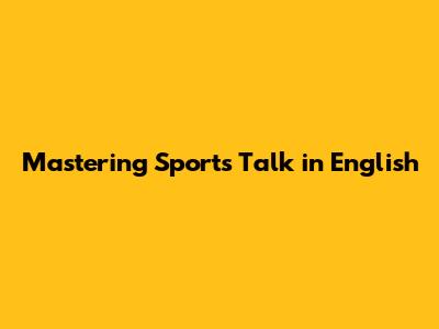 Mastering Sports Talk In English