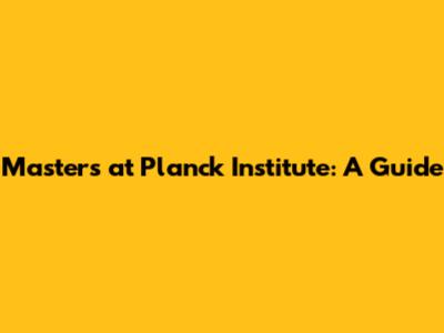 Master's At Planck Institute: A Guide