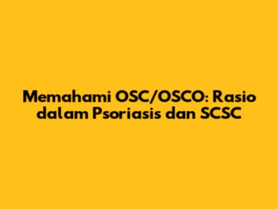 Selanjutnya, mari kita hadapi SCSC, singkatan misterius lainnya. Tanpa konteks tambahan, sulit untuk mengetahui apa yang diwakili oleh SCSC. SCSC mungkin adalah singkatan dari kondisi medis tertentu, atau mungkin mengacu pada aspek tertentu dari psoriasis atau kondisi terkait. Untuk tujuan diskusi ini, mari kita asumsikan bahwa SCSC adalah kondisi kulit atau aspek penting dari penyakit kulit yang melibatkan peran OSC/OSCO.
