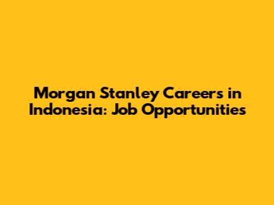 Morgan Stanley Careers In Indonesia: Job Opportunities