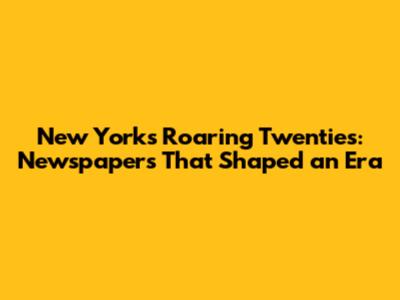 New York's Roaring Twenties: Newspapers That Shaped An Era