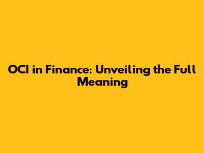 OCI In Finance: A Complete Guide
