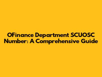 OFinance Department SCUOSC Number: Everything You Need To Know
