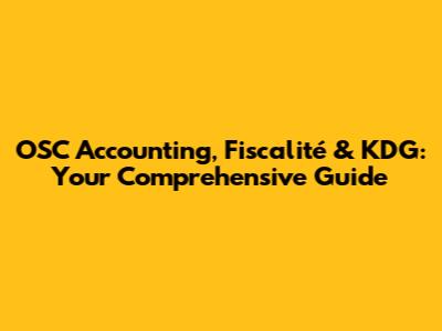 OSC Accounting, Fiscalité & KDG: Your Comprehensive Guide