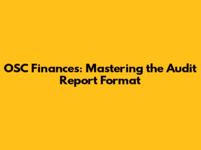 OSC Finances: Mastering The Audit Report Format