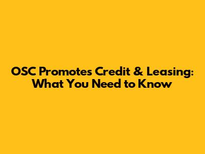 OSC Promotes Credit & Leasing: What You Need To Know