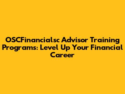 OSCFinancialsc Advisor Training Programs