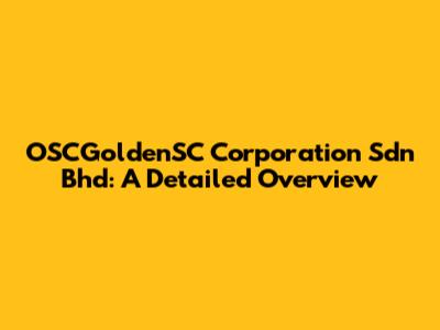 OSCGoldenSC Corporation Sdn Bhd: A Detailed Overview