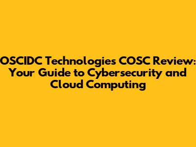 OSCIDC Technologies COSC Review: Your Guide To Cybersecurity And Cloud Computing