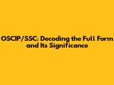 OSCIP/SSC: Decoding The Full Form And Its Significance