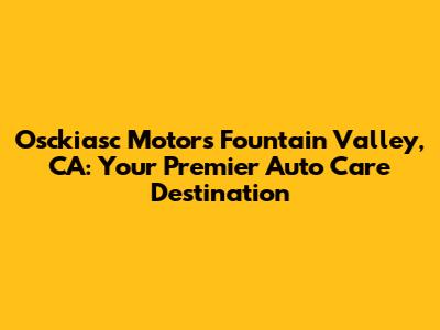 Hey guys! Are you searching for a reliable auto shop in Fountain Valley, CA? Look no further! Osckiasc Motors is here to provide top-notch automotive services with a commitment to quality and customer satisfaction. Let's dive into what makes Osckiasc Motors the go-to place for all your vehicle needs.