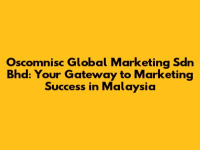 Hey guys! Ever heard of Oscomnisc Global Marketing Sdn Bhd? If you're doing business in Malaysia, or planning to, this is one name you definitely want to know. They're not just another marketing agency; they're your partners in navigating the dynamic Malaysian market, helping you to grow and succeed. Let's dive deep into what makes Oscomnisc Global Marketing a standout player, and why they might just be the secret ingredient your business needs.