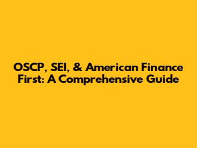 OSCP, SEI, & American Finance First: A Comprehensive Guide