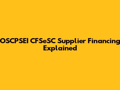 OSCPSEI CFSeSC Supplier Financing Explained